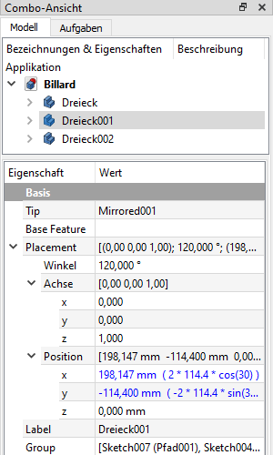 Eigenschaften(-Ansicht) Dreieck001 (rarr; Abb.09a):- Placement - Winkel: 120°