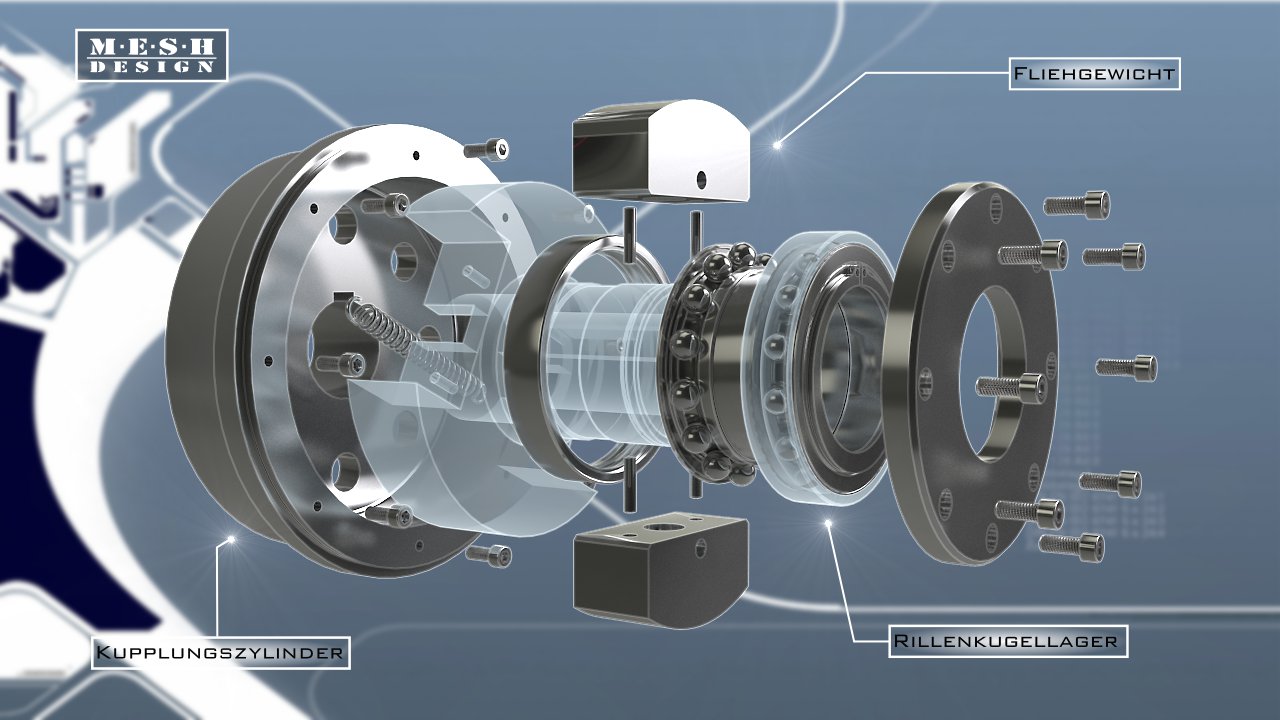 Professionell gerendertes Bild der (geöffneten) Fliehkraftkupplung